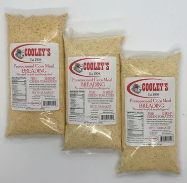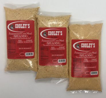 Cooley's Preseasoned Breading is mixed with a special blend of seasonings and spices that gives fried catfish that down-home taste. Spices that not only can you see, but even smell, and there’s no MSG!